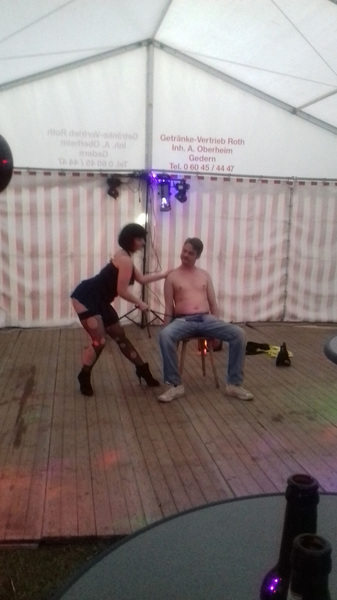 Um die Stimmung etwas aufzulockern hatten wir für den Abend die „Entkleidungskünstlerin“ Rachel gebucht. Unser Koch Sascha war der Glückliche, der auf dem Stuhl platznehmen durfte. Auch hier zeigte er vorbildlichen Einsatz.