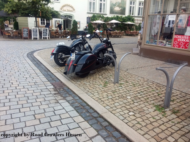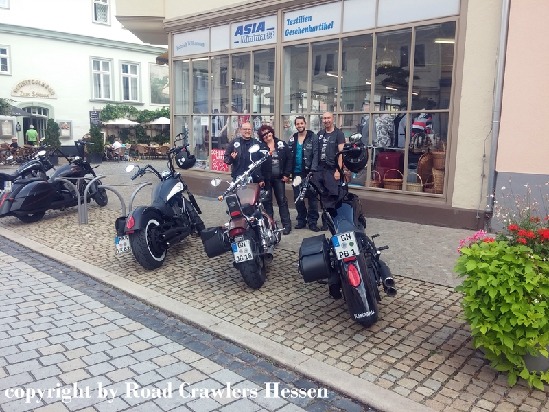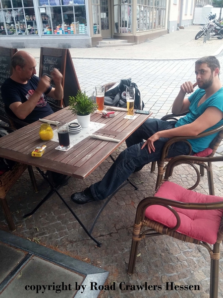 P.I.T. übernahm, nach kurzer Rast (Thüringer Wurst), die Führung in Richtung Arnstadt. In einem Arnstädter Cafe´ ließen sie, bei guten Gesprächen, den Tag dann nochmals Revue passieren. Am frühen Abend fuhren dann alle in ihre Unterkunft nach Crawinkel. Ron (der Wirt der Gemeindeschenke) machte trotz Ruhetag noch ein leckeres Abendessen. Die Tour für den nächsten Tag wurde im Anschluss geplant.