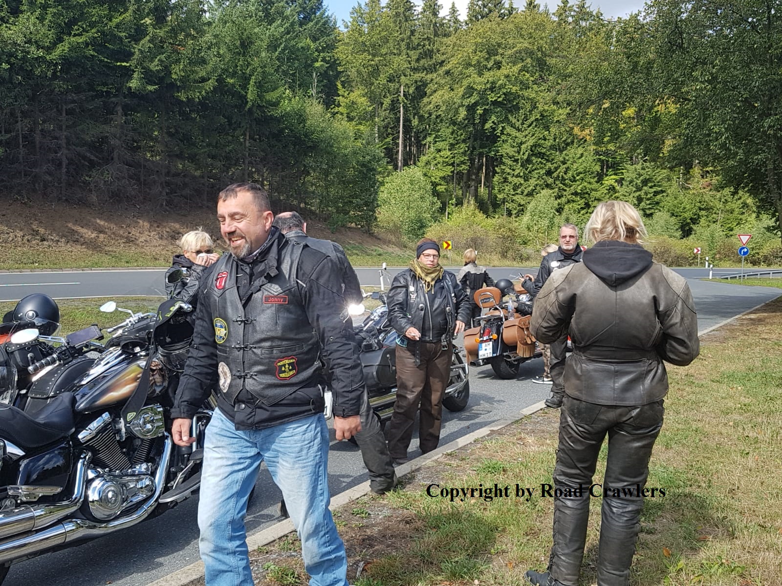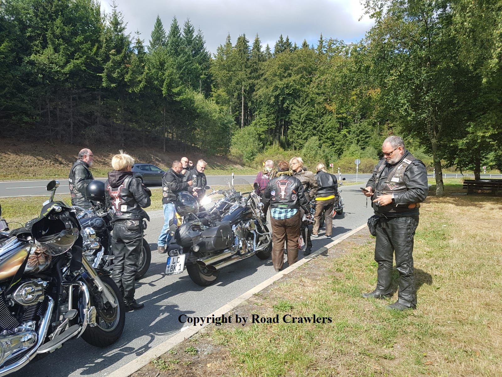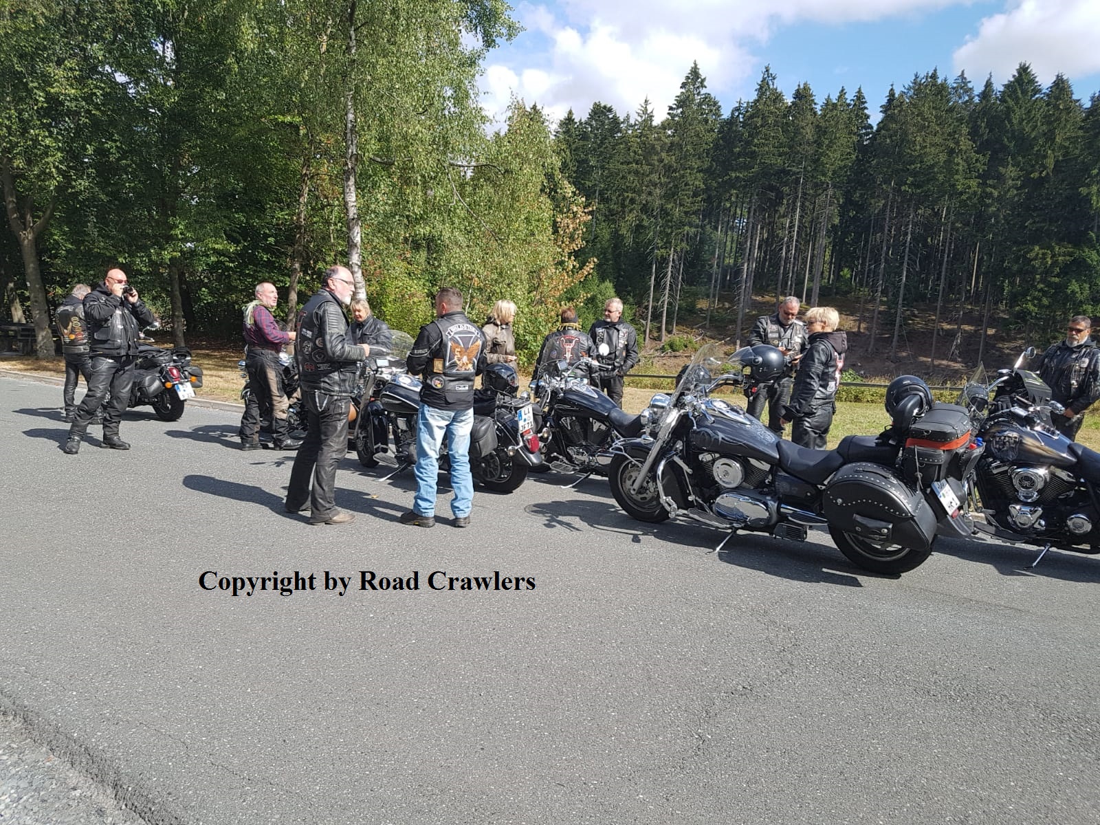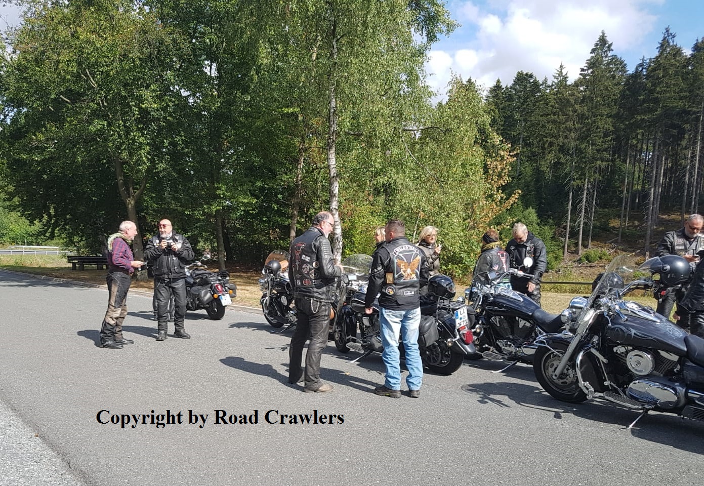 Eigentlich stand eine Floßfahrt auf dem Programm, welche allerdings wegen Niedrigwasser ausfallen musste. Dies tat aber der Stimmung keinen Abbruch. Ernst (Poessi) hatte eine super tolle Tour (etwa 200 Km), die wir am Samstag in Angriff nahmen, heraus gesucht. Bei durchwachsenem Wetter lernten wir sehr schöne Ecken des Thüringer Schiefergebirges kennen.