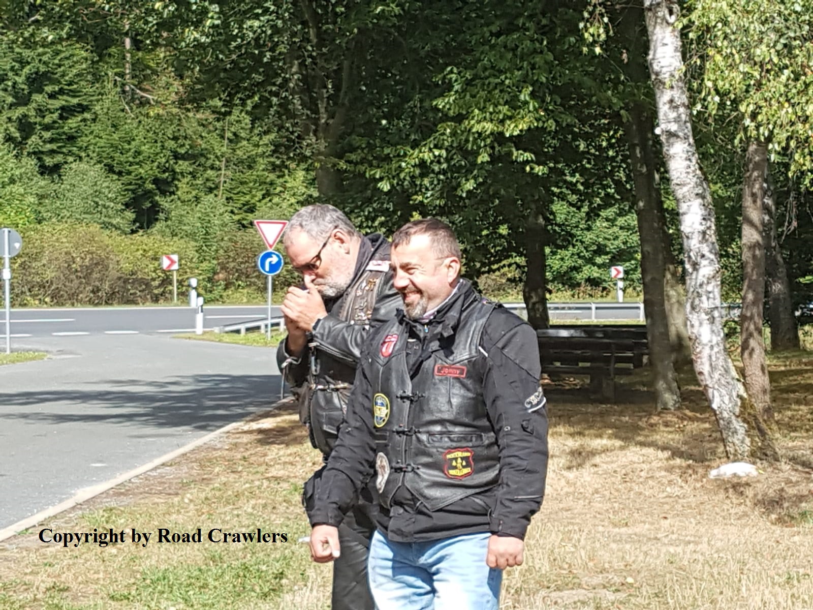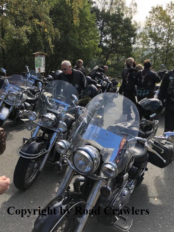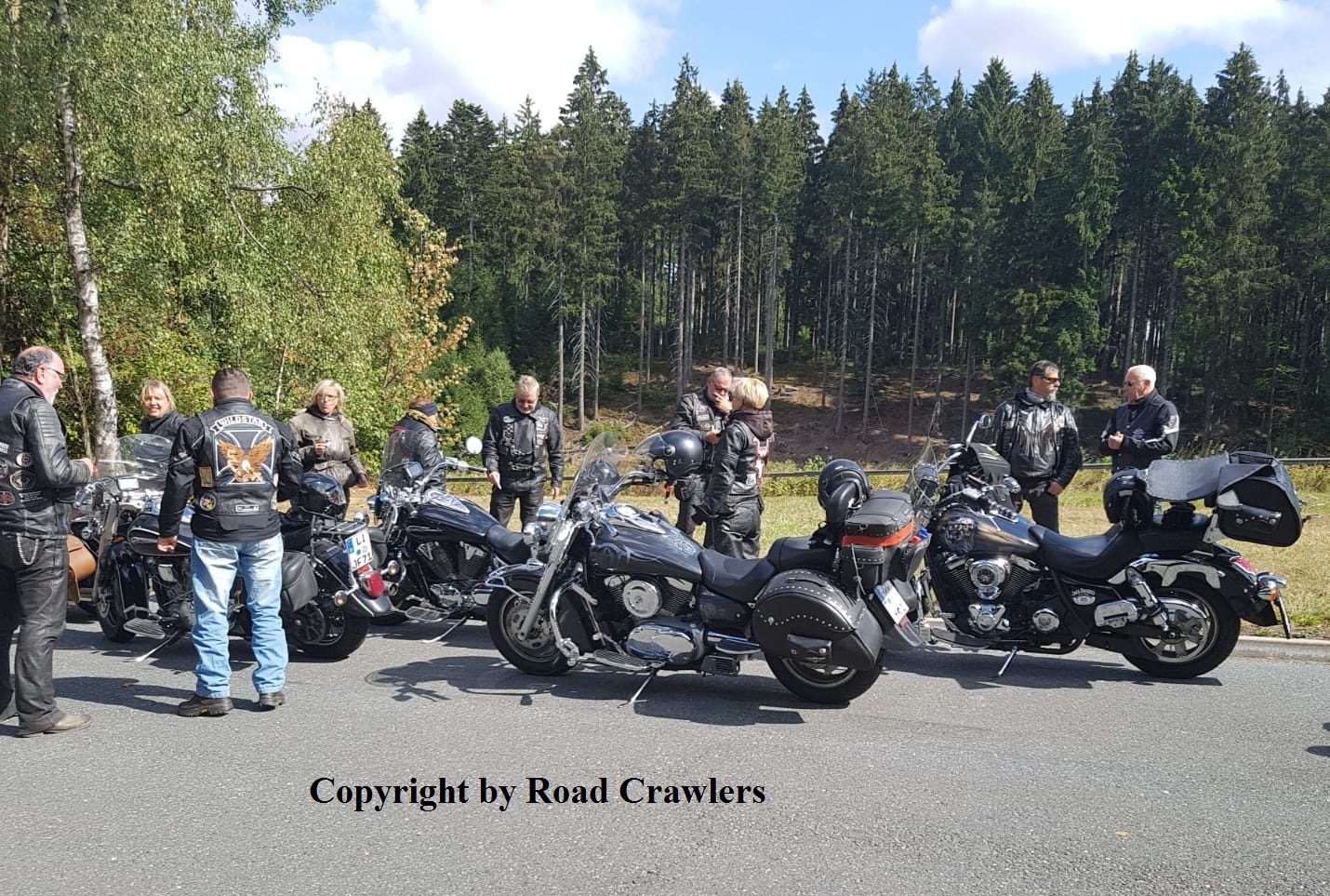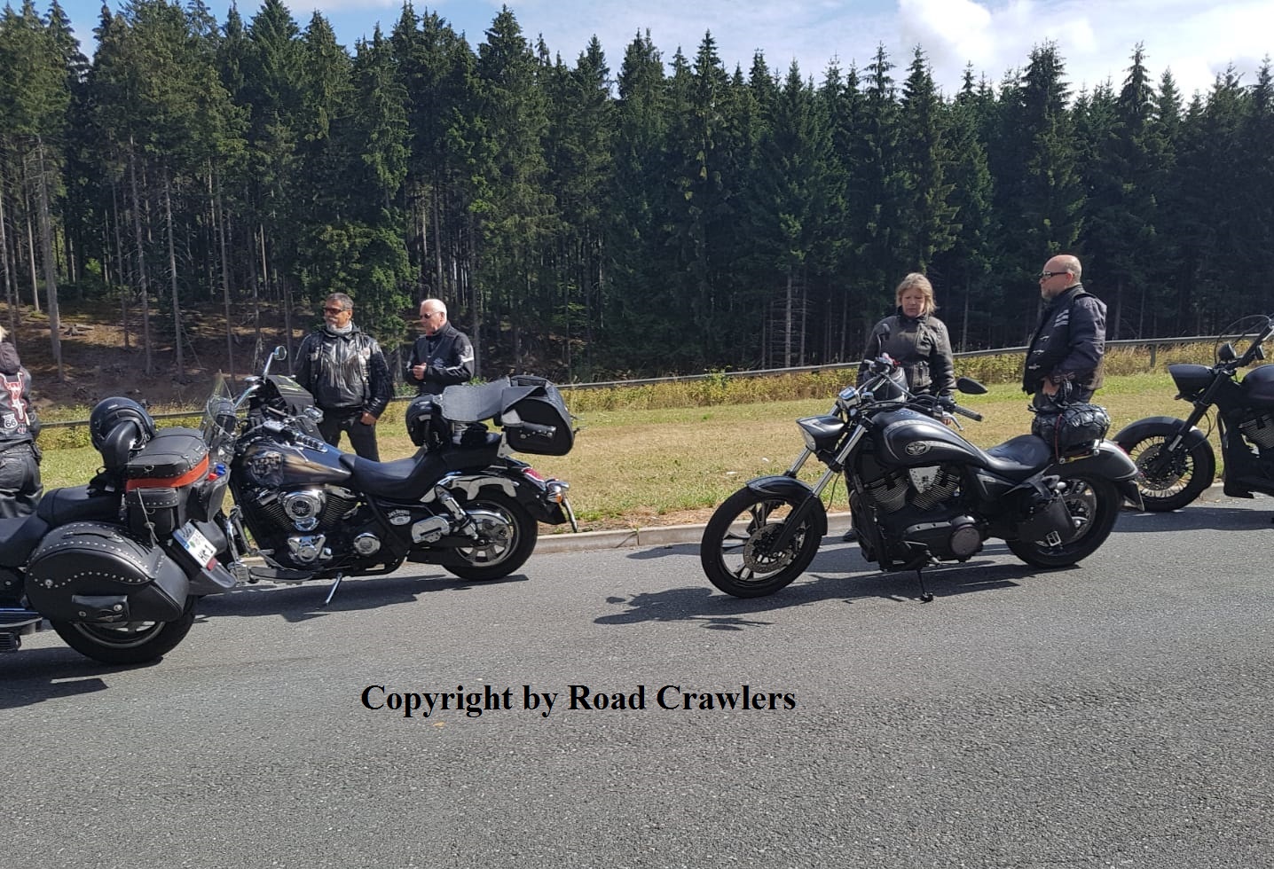 Eigentlich stand eine Floßfahrt auf dem Programm, welche allerdings wegen Niedrigwasser ausfallen musste. Dies tat aber der Stimmung keinen Abbruch. Ernst (Poessi) hatte eine super tolle Tour (etwa 200 Km), die wir am Samstag in Angriff nahmen, heraus gesucht. Bei durchwachsenem Wetter lernten wir sehr schöne Ecken des Thüringer Schiefergebirges kennen.